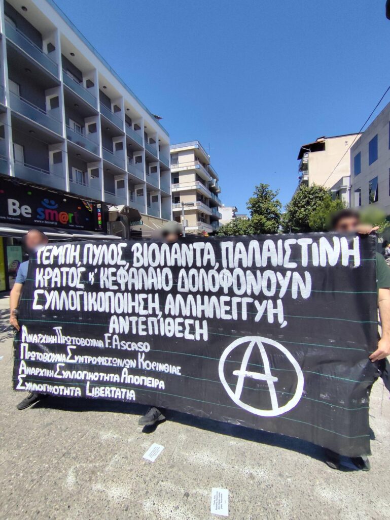 Κατεβήκαμε στον δρόμο σε κοινό μπλοκ με συντρόφους και συντρόφισσες από την Αναρχική συλλογικότητα Απόπειρα, την Αναρχική πρωτοβουλία αντίστασης και δράσης F.ASCASO και την Πρωτοβουλία συντροφισσών/ων Κορινθίας.